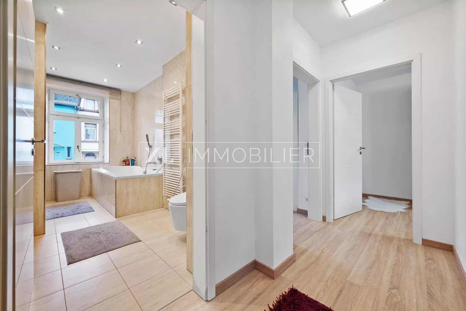 - Une salle de bain de 10 m² avec douche et baignoire