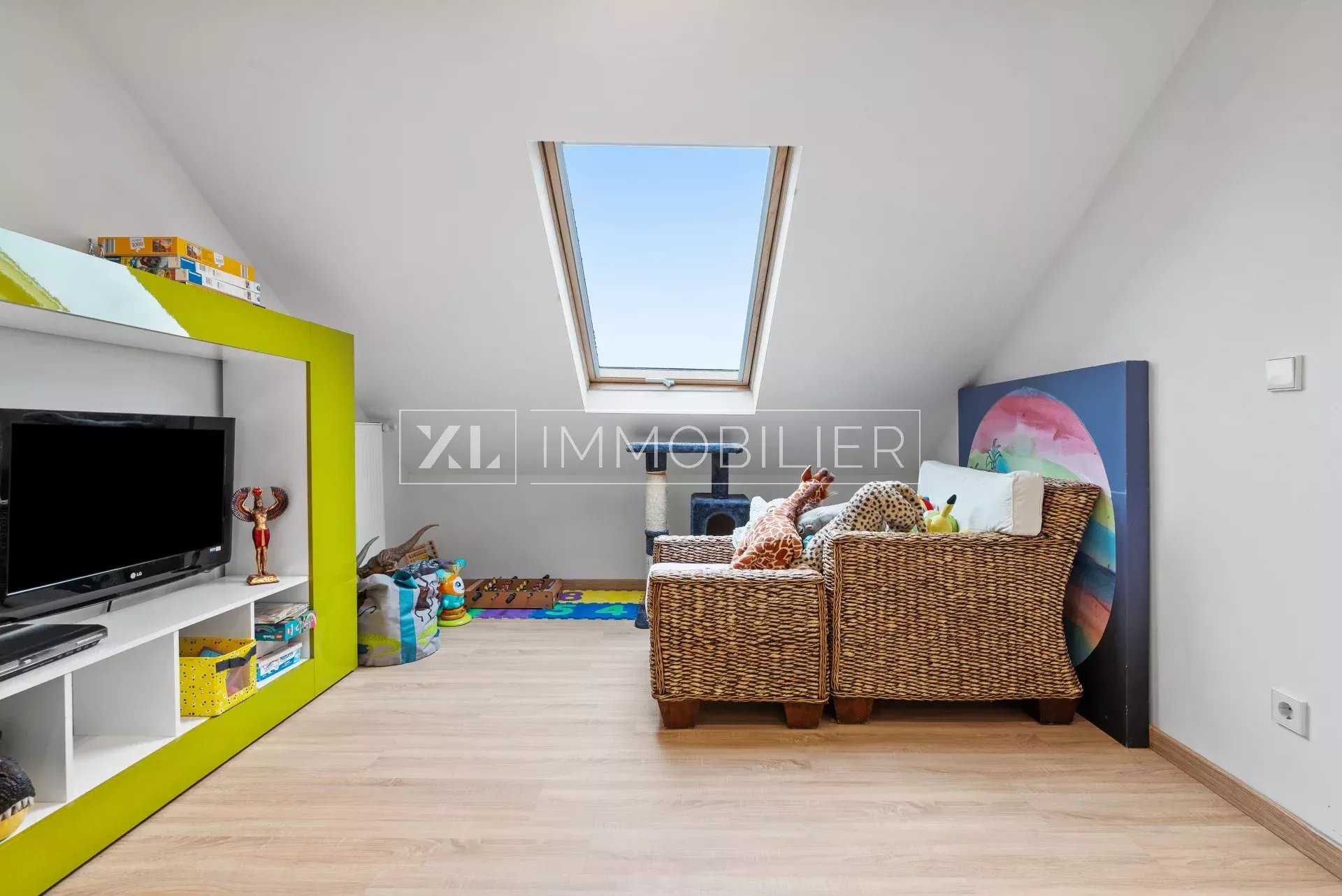 - Un grand espace ouvert pouvant faire office de bureau ou salle de jeux de 7,3 m²